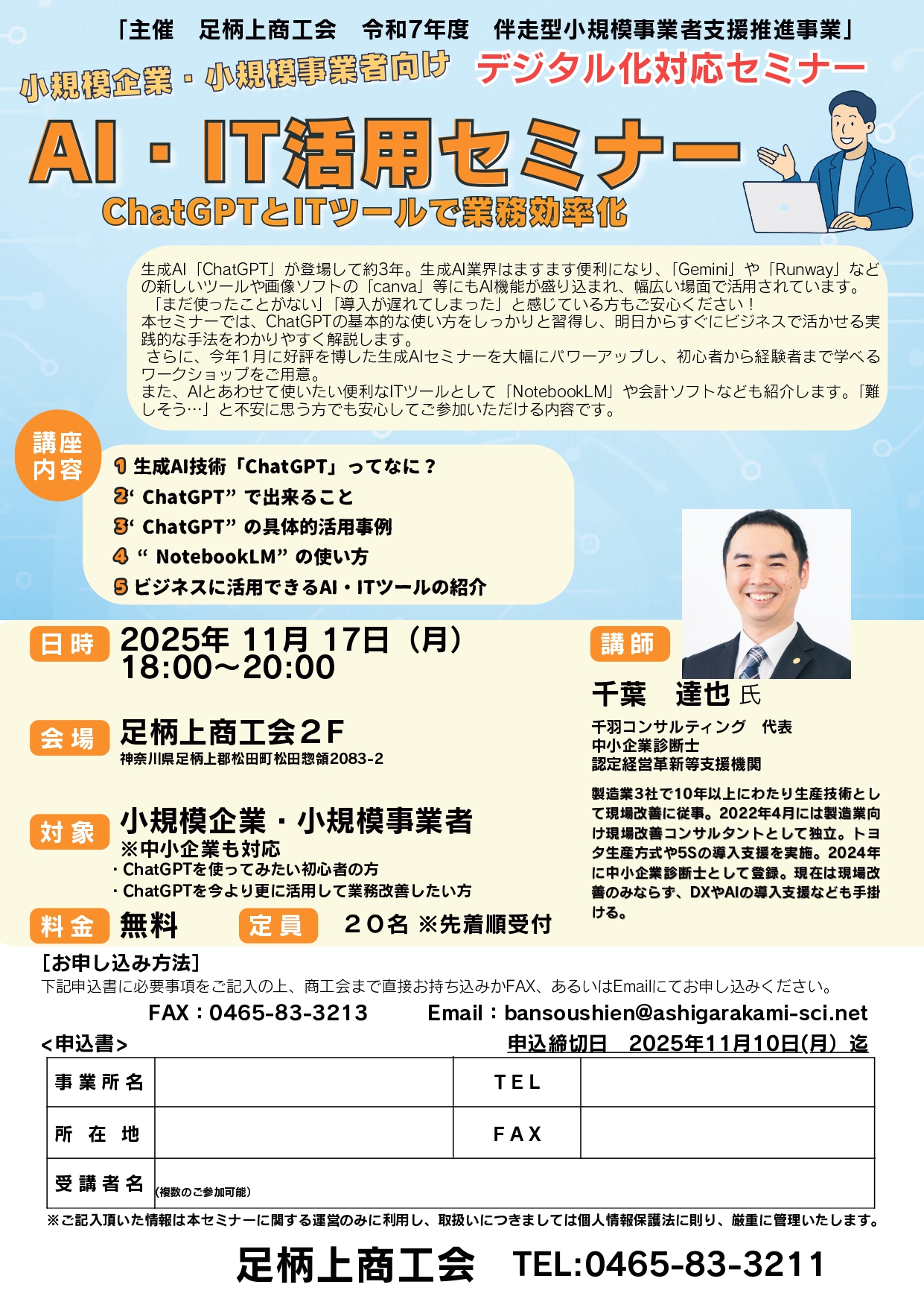足柄上商工会主催の「生成AI・IT活用セミナー」に登壇いたしました。